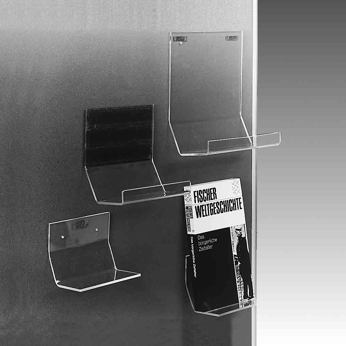Fensterpult für dünne Bücher und Broschüren (von innen an der Schaufensterscheibe in Augenhöhe zu befestigen)